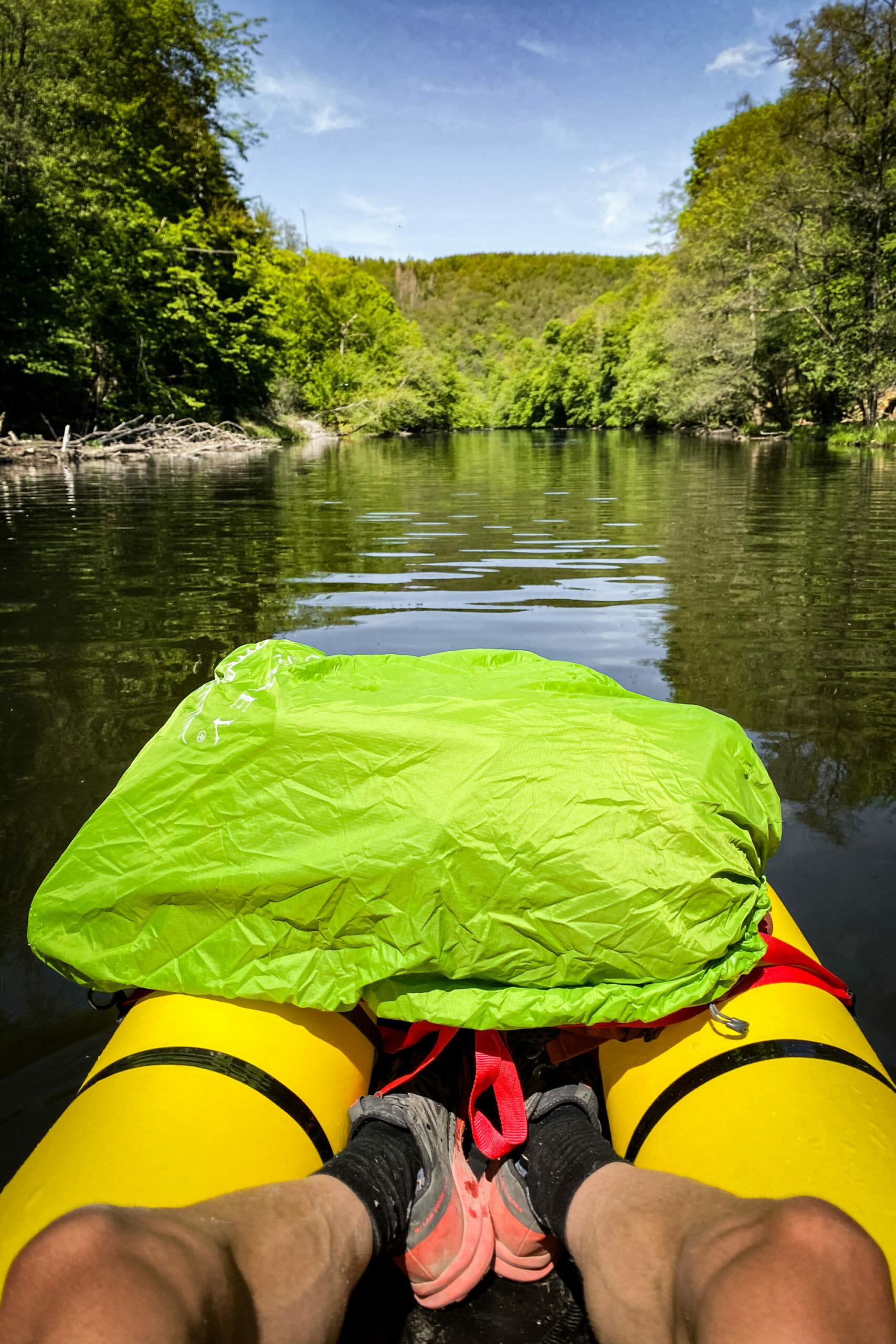 Après avoir manger le long de l’eau, nous remontrons le cours de la rivière par ses versants abruptes et ses points de vue à couper le souffle avec les packrafts dans le sac.